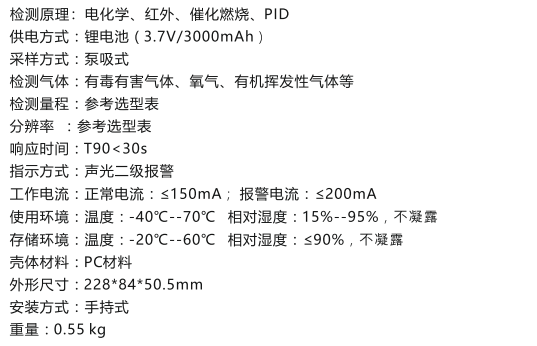 WASP-XM系列手持泵吸式氣體檢測(cè)儀是一種可連續(xù)監(jiān)測(cè)各類有毒有害氣體濃度的檢測(cè)設(shè)備。本產(chǎn)品適用于環(huán)境監(jiān)測(cè),工業(yè)生產(chǎn)等對(duì)人體有害氣體的工作環(huán)境,能夠有效保障工作人員健康和生命安全不受到侵害。