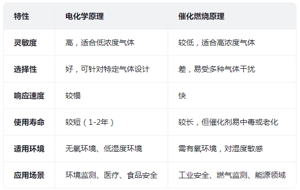 電化學(xué)原理和催化燃燒原理在氣體檢測中的應(yīng)用各有優(yōu)勢和局限性,其使用頻率取決于具體的應(yīng)用場景和需求。以下是兩者的對比分析: