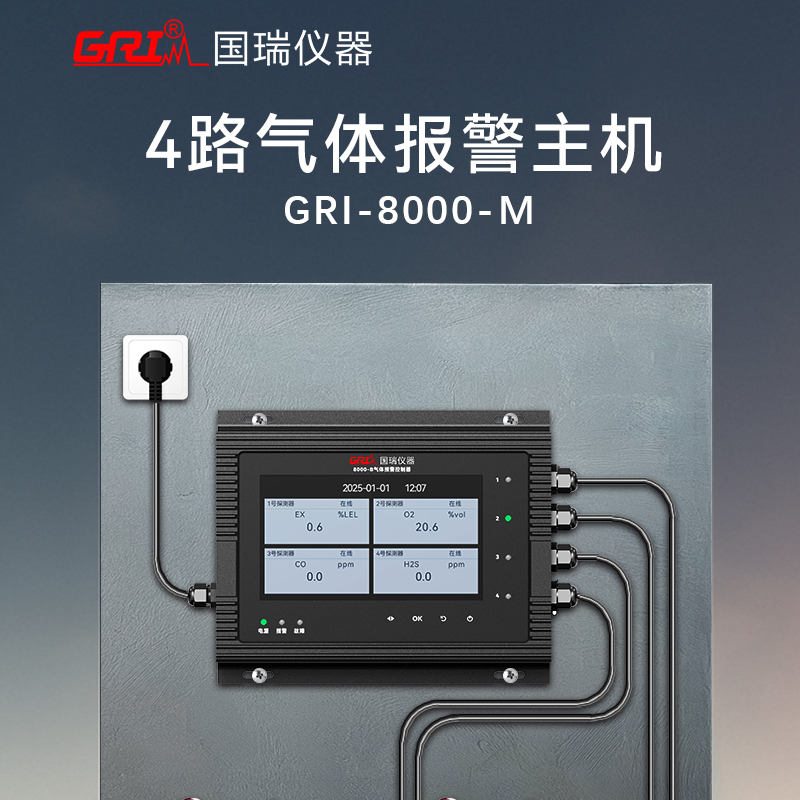 GRI-8000-M壁掛式氣體報警主機,是用于測量并持續(xù)監(jiān)控存在于環(huán)境中的氣體;可實時同時監(jiān)測8路氣體狀態(tài),并通過大屏幕LCD實時顯示測量狀態(tài),對異常監(jiān)測狀態(tài),快速精確反應報警,除聲音報警,可視報警外,還可控制外接繼電器,方便控制外圍預警系統(tǒng)。同時,具有時間 、日期以及系統(tǒng)運行時間顯示 。系統(tǒng)具有RS485數(shù)字信號連接8路變送器對環(huán)境氣體進行實時監(jiān)控。GRI-8000-M壁掛式氣體報 警主機,具有8路主機標配報警,繼電器輸出,同時配備聲音報警和LED顯示報警。 多種報警控制方式,以便操作人員對報警情況進行快速高效處理。GRI-8000-M可廣泛應用于工廠、倉庫、礦井等各種現(xiàn)場環(huán)境的在線監(jiān)測。